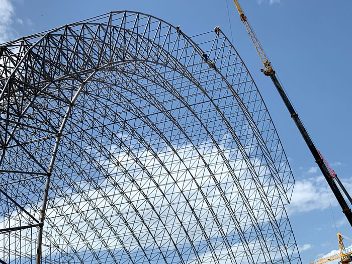 (2)网架加工前应对现场尺寸进行复测,确认无误后方可进行加工、安装;网架制作、运输、安装应遵守《空间网格结构技术规程》JGJ7-2010、《钢网架海淀螺栓球节点》JG/T 10-2009、《钢网架海淀螺栓球节点用高强度螺栓》 GB/T 16939-2016、《海淀钢结构海淀工程海淀施工规范》 GB50755-2012、《海淀钢结构海淀工程施工质量验收标准》 GB50205-2020。